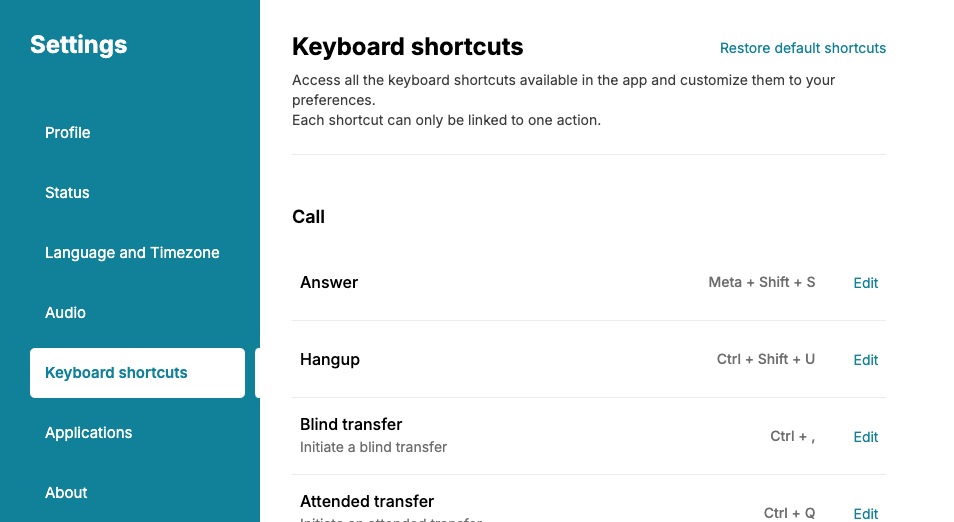 Note: Shortcuts in the browser are not the same as in the softphone client. Common commands like CTRL+C and CTRL+P may not work here.