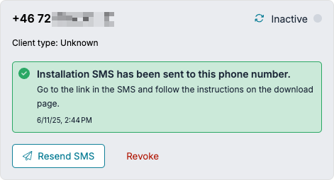 If your mobile device is configured in the system, you can activate the Dstny app by receiving an SMS with an installation link.