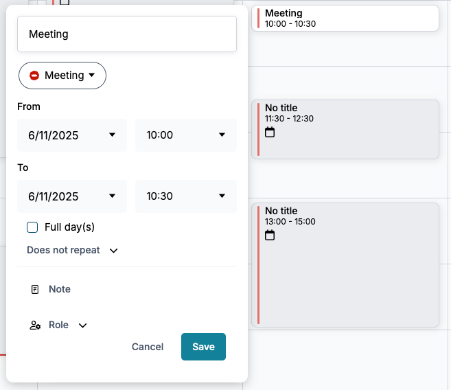 Click on a time in the calendar to create a new status change. You can enter: