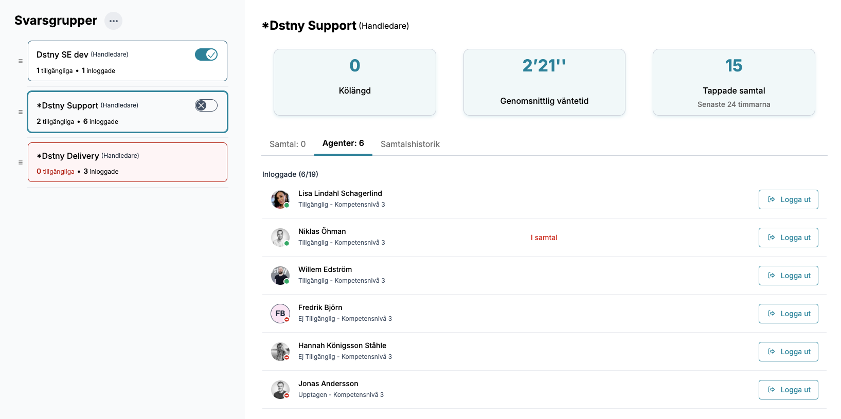 - Se tillgängliga och inloggade agenter