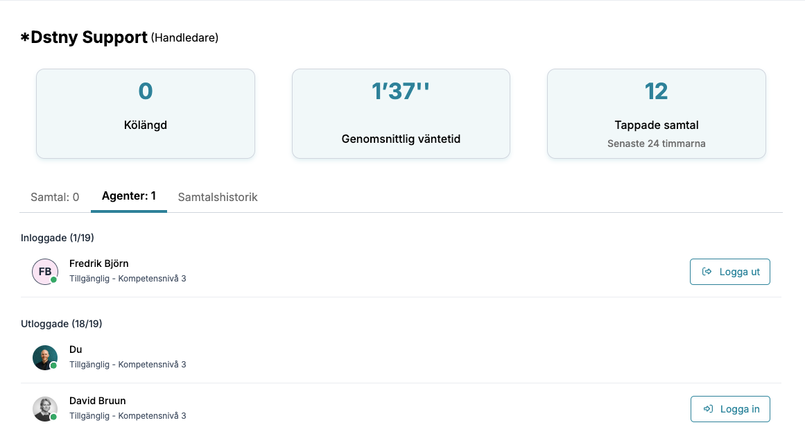 Både agenter och handledare kan se samtalshistorik för köer – t.ex. besvarade, obesvarade eller vidarekopplade samtal.