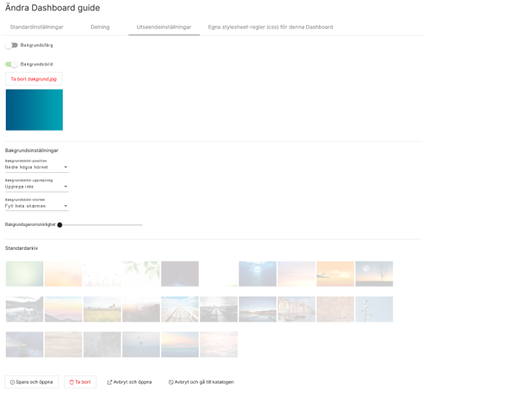 - Välj bakgrundsfärg, bakgrundsbild via URL, fil eller från Standardarkiv