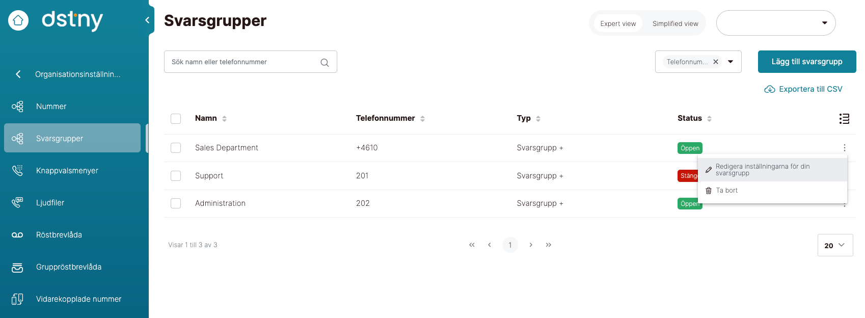 Klicka på de tre prickarna (⋮) bredvid din grupp eller IVR och välj Redigera.