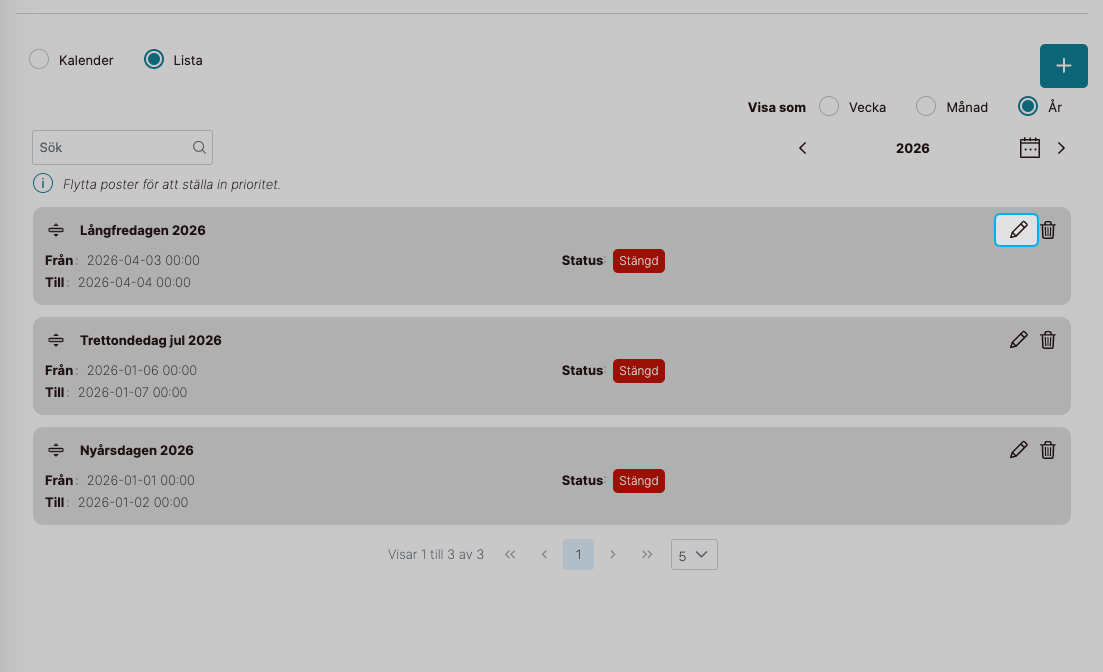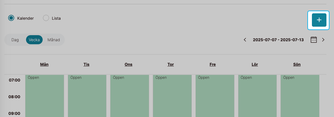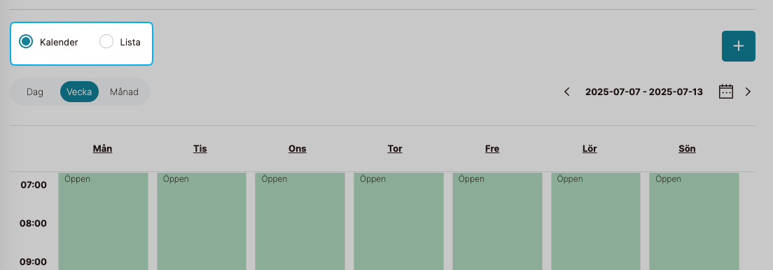Kalendervyn ger en snabb överblick över öppettider, medan listvyn är användbar för detaljerad information.