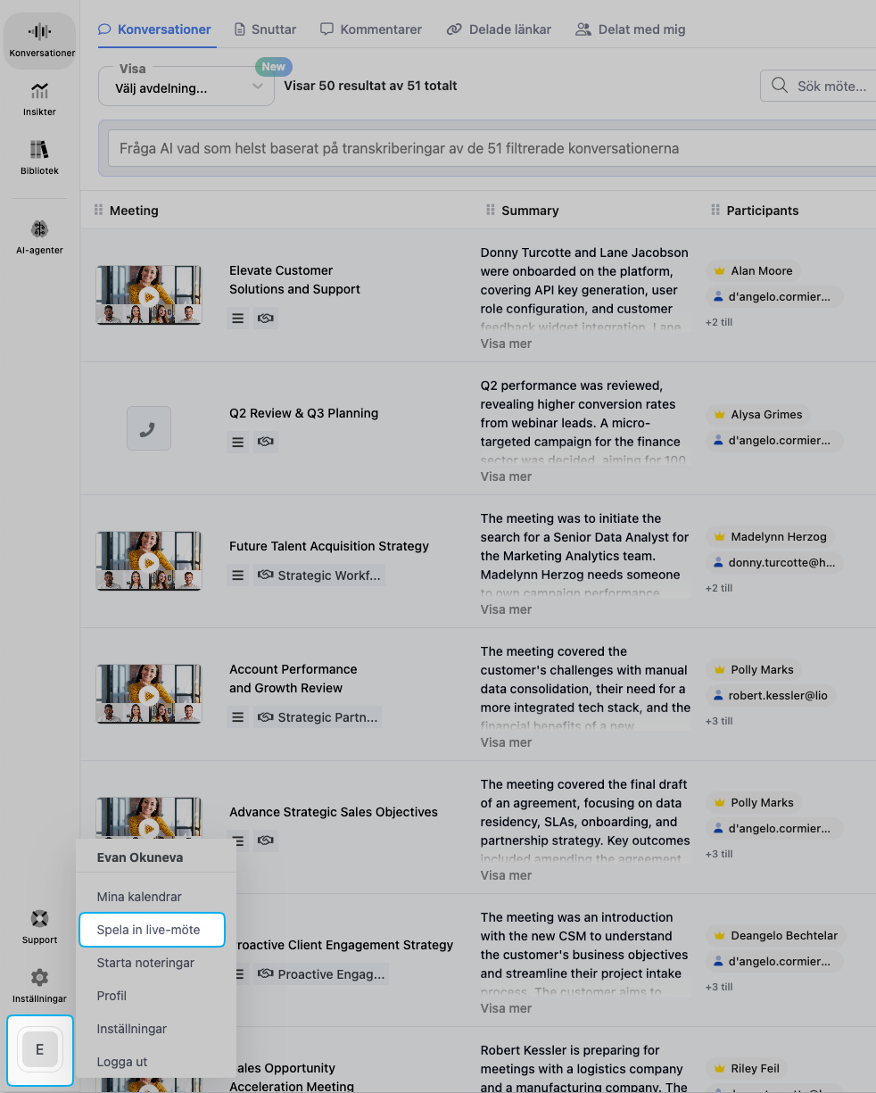 Med funktionen Live Recording kan du spela in möten direkt och få automatiska transkriptioner och AI-sammanfattningar. Följ stegen nedan för att komma igång: