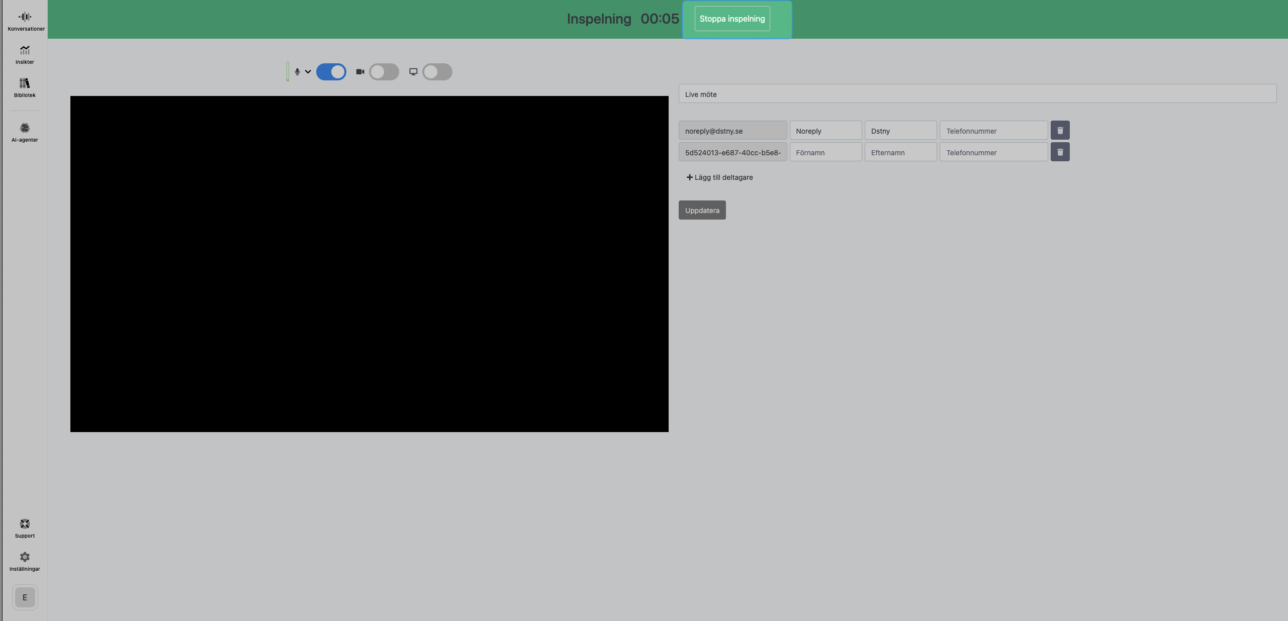Notera: En e-postadress är obligatorisk för att uppladdningen av inspelningen ska kunna slutföras.